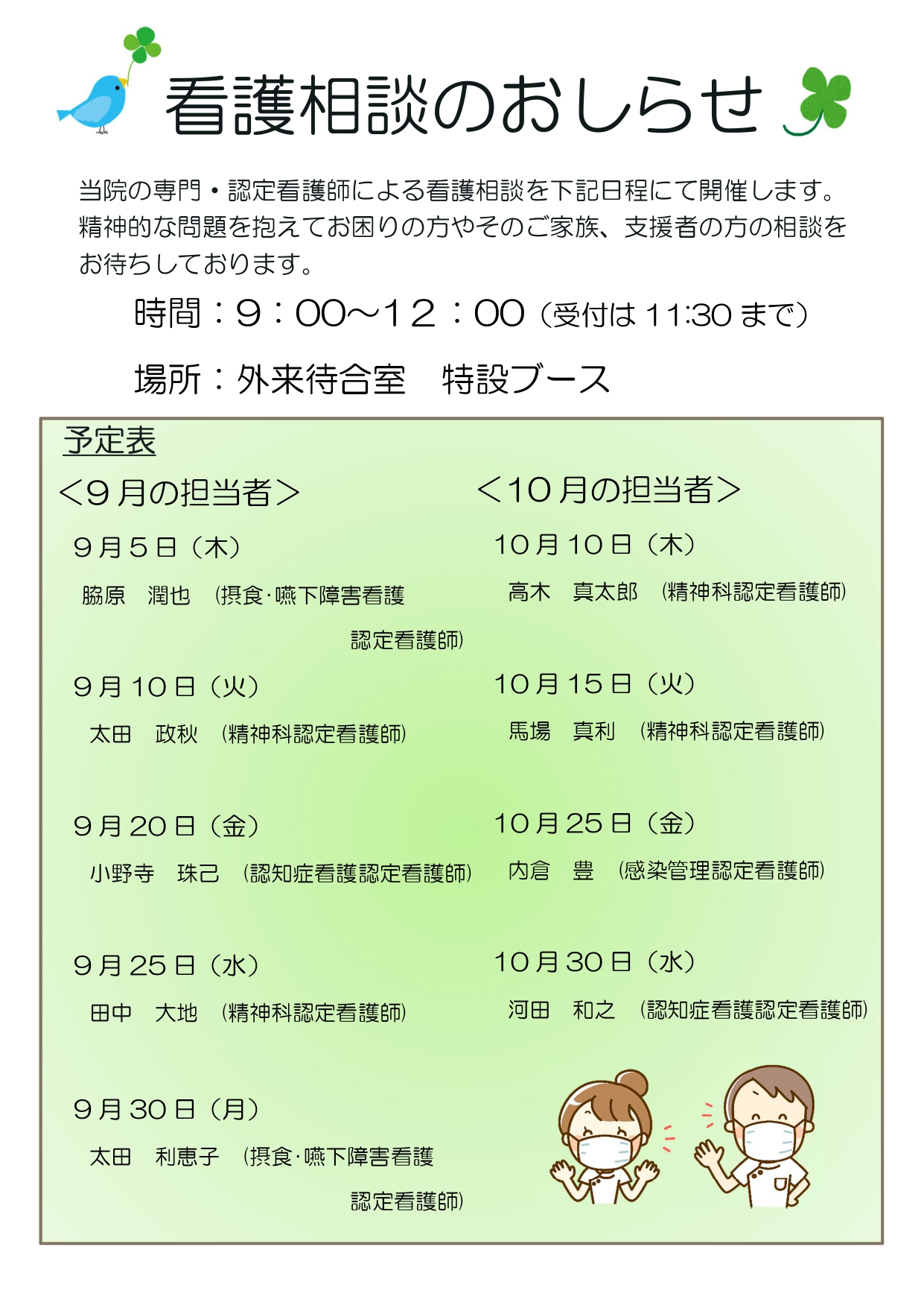 HOME > 新着情報 > 専門・認定看護師による相談コーナー(9・10月)