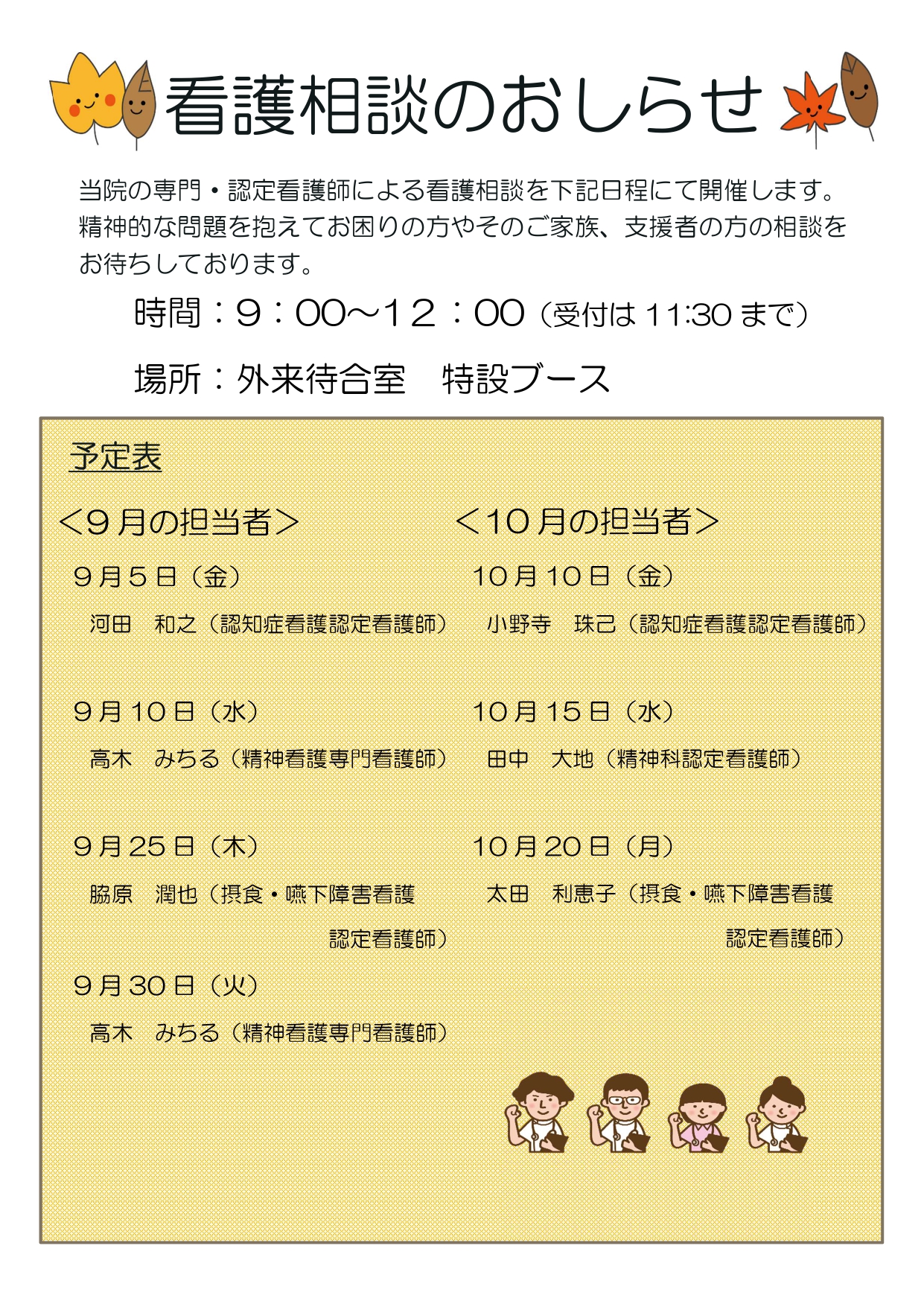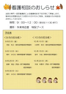 HOME > 新着情報 > 専門・認定看護師による相談コーナー(9・10月)