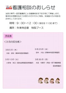 HOME > 新着情報 > 専門・認定看護師による相談コーナー(3月)