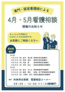 HOME > 新着情報 > 専門・認定看護師による相談コーナー(4・5月)